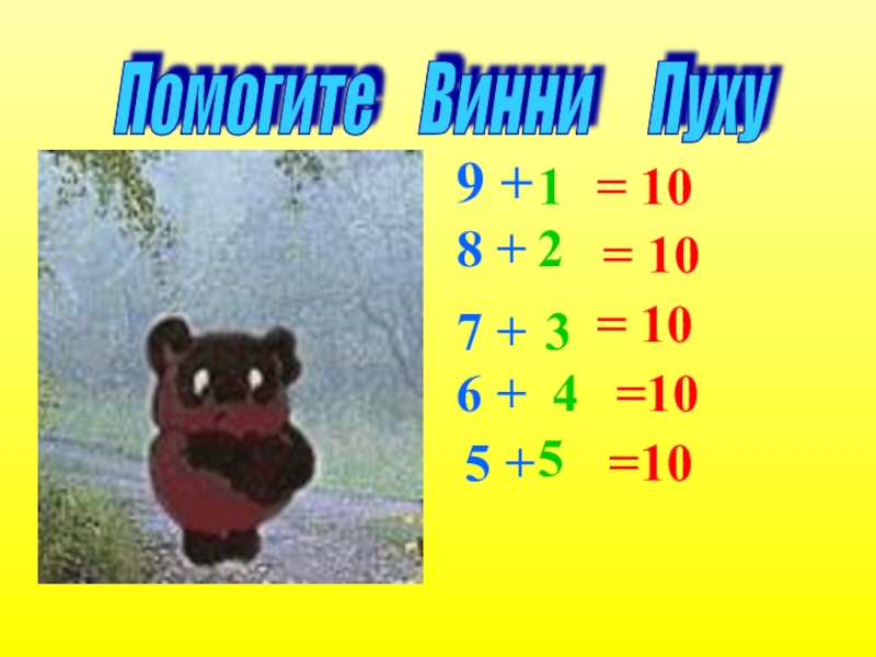 9 +1= 108 +2= 107 +3= 106 +4=105 +5=10Помогите  Винни   Пуху