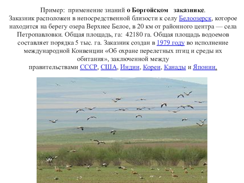 Слайд 18Пример: применение знаний о Боргойском заказнике.