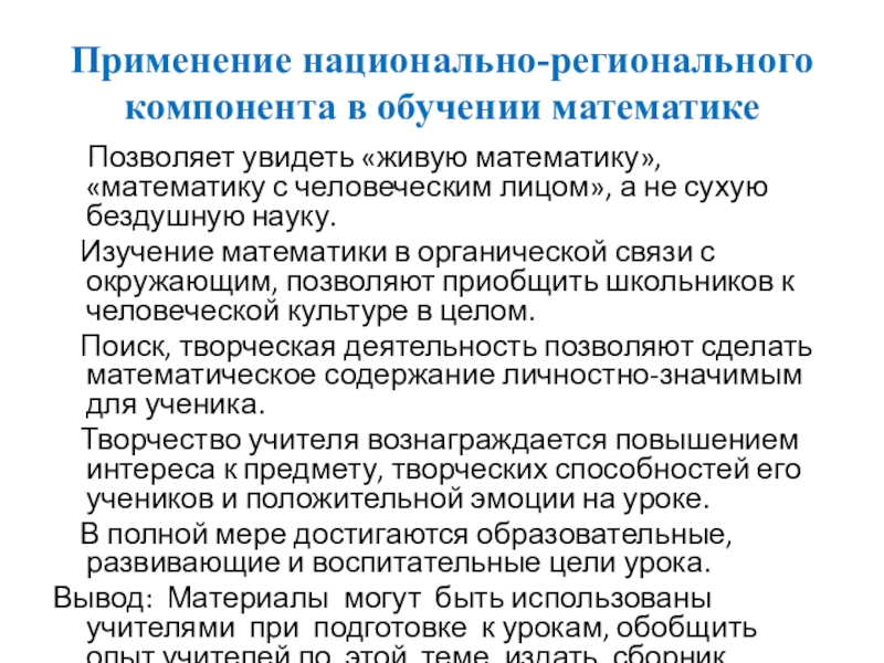 Слайд 26Применение национально-регионального компонента в обучении математике