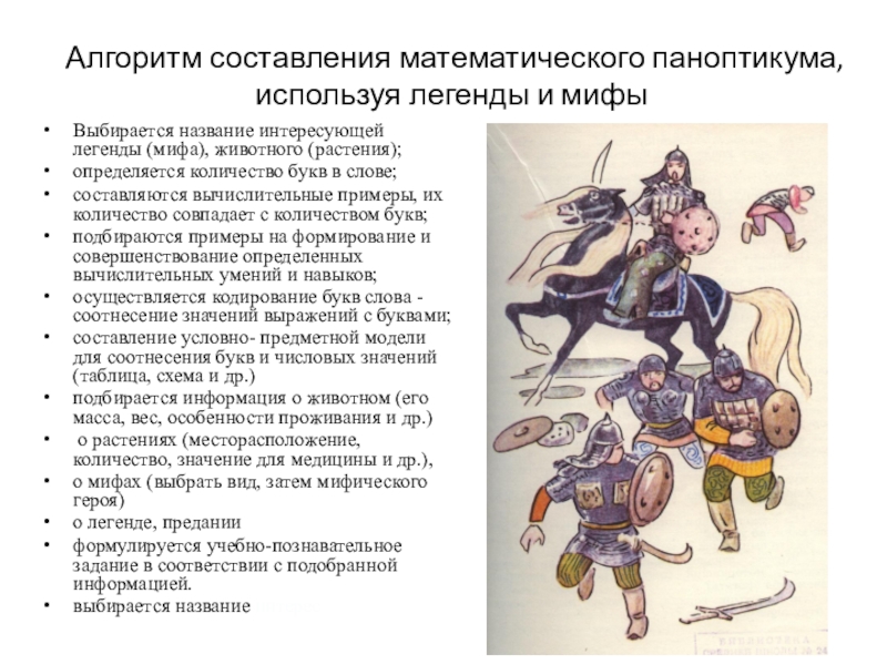 Алгоритм составления математического паноптикума, используя легенды и мифы
