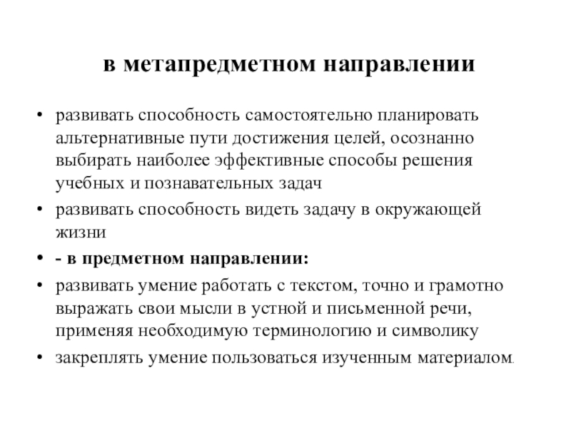 Слайд 5 в метапредметном направлении