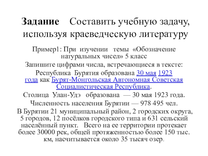 Слайд 16Задание Составить учебную задачу, используя краеведческую литературу
