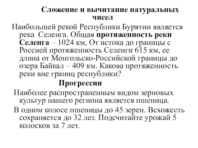 Интеграция математики с окружающим миром. Информация о конкретном животном (растении), обитающем на территории Республики Бурятия, представлена не в готовом виде, а требует выполнения предварительного математического упражнения;
