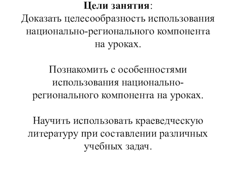 Цель использования материала национально-регионального компонента