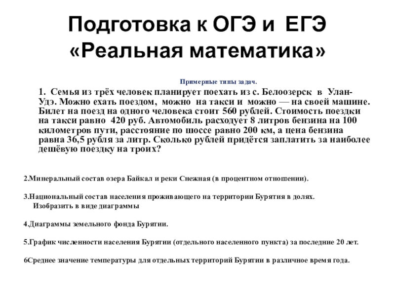 Слайд 25Подготовка к ОГЭ и ЕГЭ «Реальная математика»