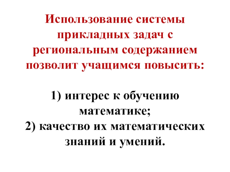 Использование системы прикладных задач с региональным содержанием позволит учащимся повысить: