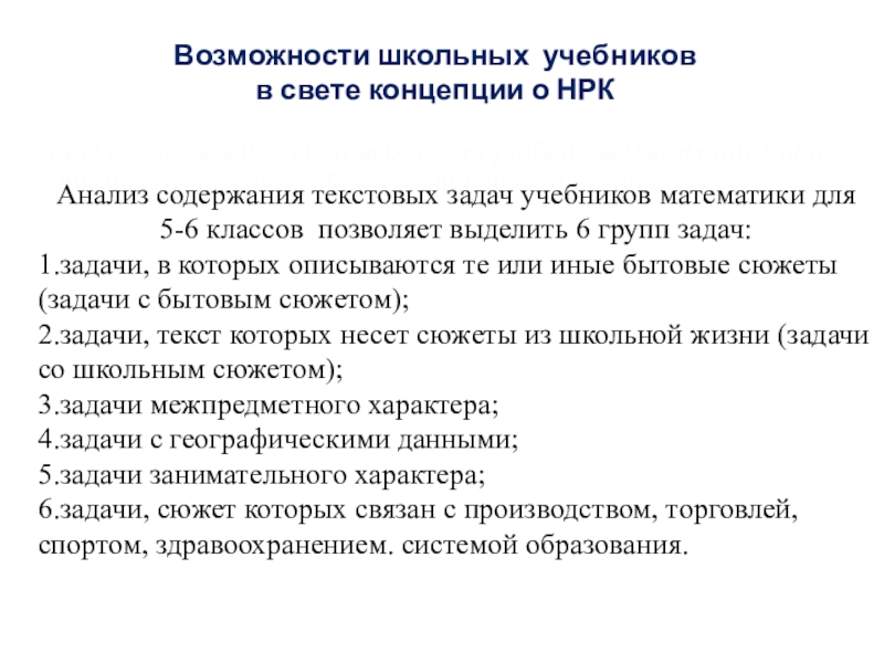 Анализ содержания текстовых задач