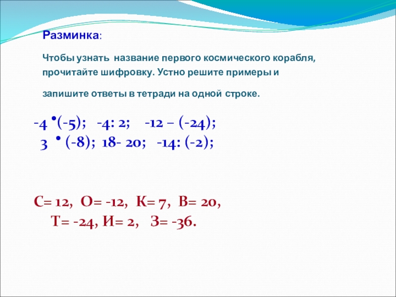 С= 12, О= -12, К= 7, В= 20,
