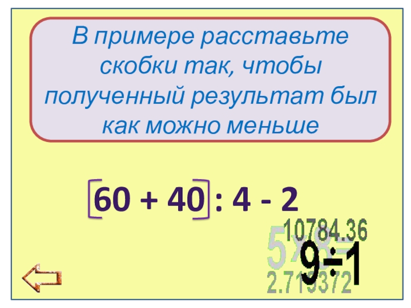 60 + 40 : 4 - 2