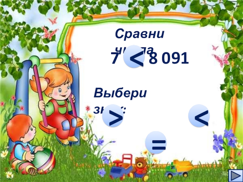 Сравни числа7    8 091…Выбери знак: