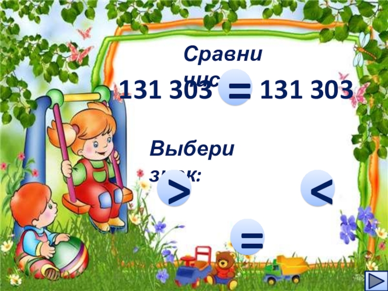 Сравни числа131 303    131 303…Выбери знак:=>