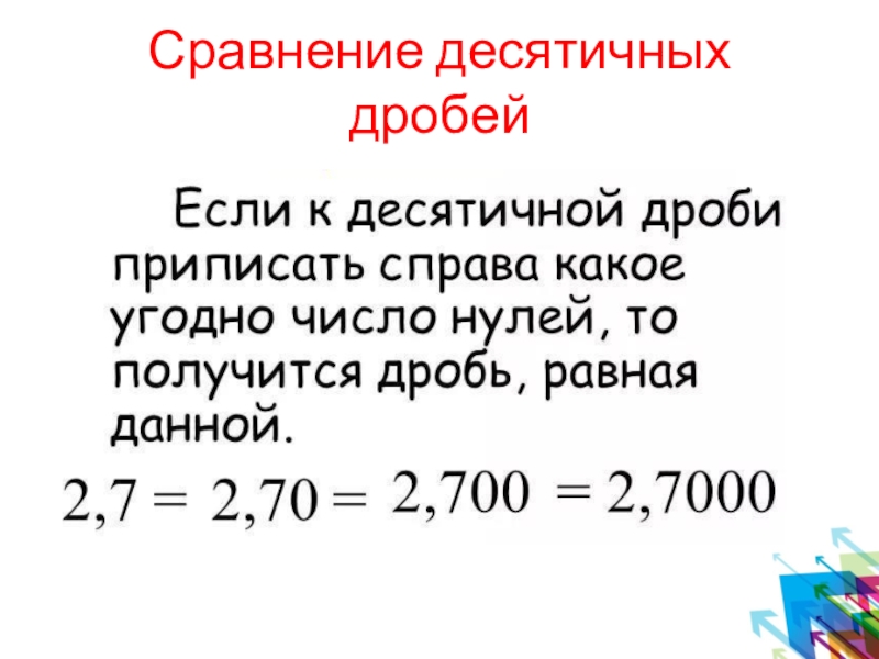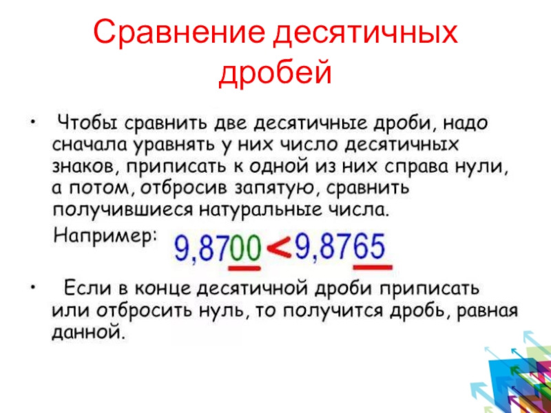 Слайд 8Сравнение десятичных дробей