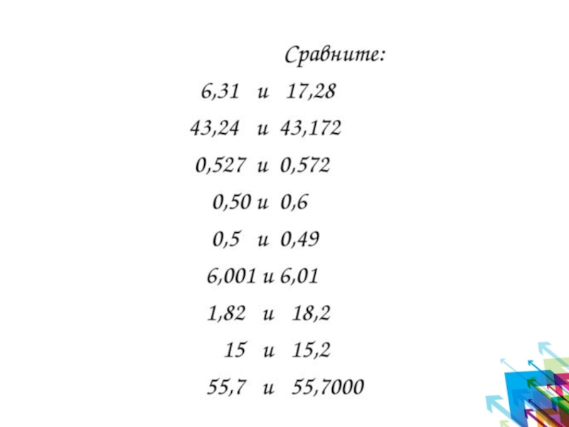 Презентация, доклад по математике Сравнение десятичных дробей (5 класс)