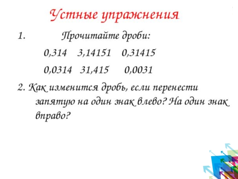 Слайд 3Устные упражнения