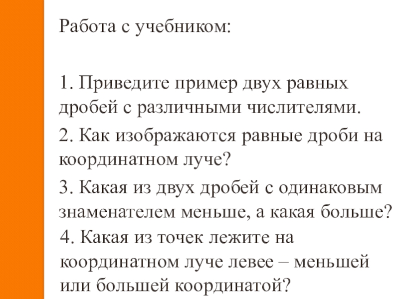 3. Какая из двух дробей с одинаковым знаменателем меньше, а какая больше?