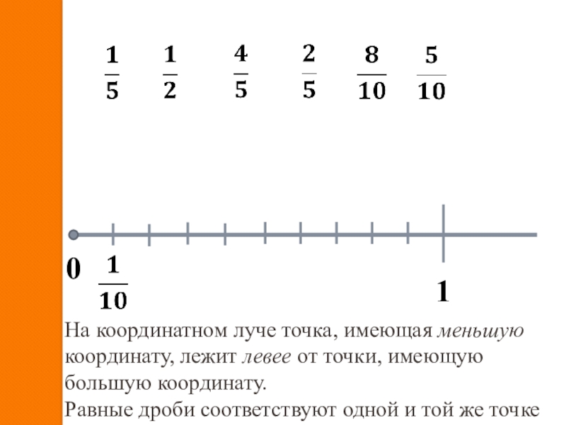 4. Какая из точек лежите на координатном луче левее – меньшей или большей координатой?