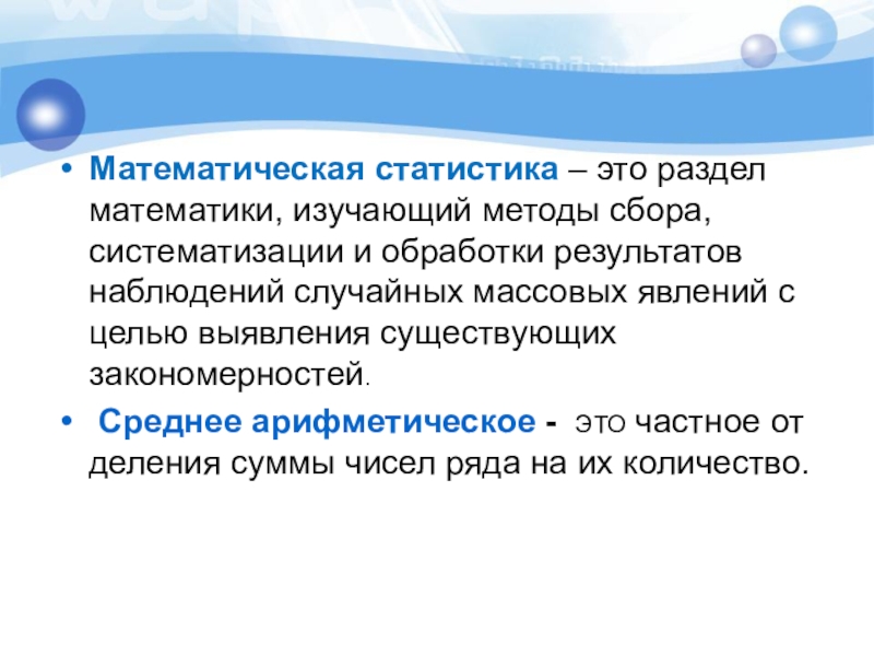 Слайд 4Математическая статистика – это раздел математики, изучающий методы сбора, систематизации и