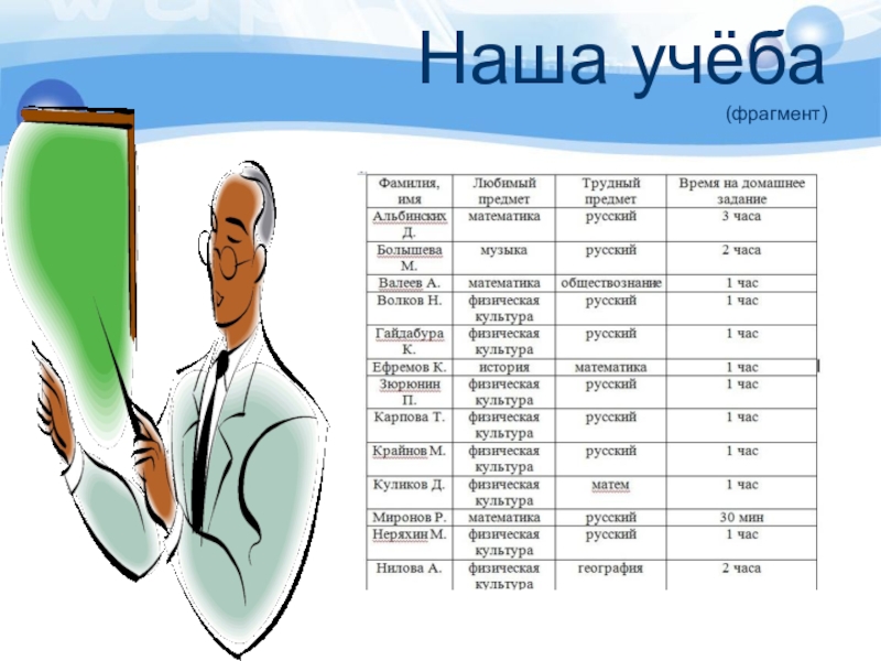 Определить, какой любимый предмет, а какой самый трудный; сколько времени тратится на выполнение домашнего задания.