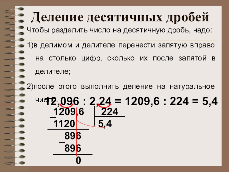 1)в делимом и делителе перенести запятую вправо на столько цифр, сколько их после запятой в делителе;