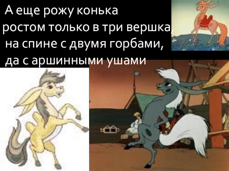 А еще рожу конькаростом только в три вершка, на спине с двумя горбами, да с аршинными