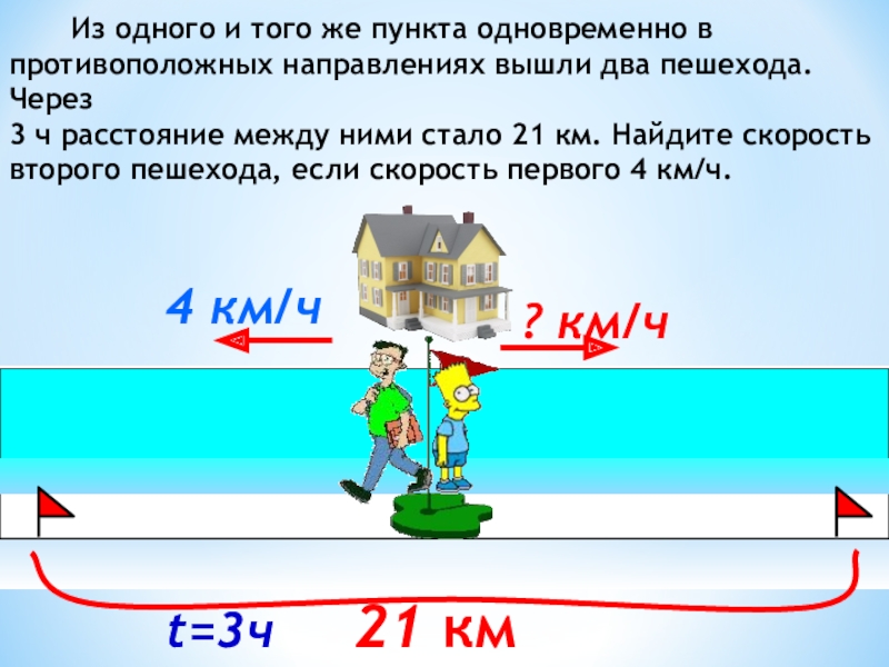 3 ч расстояние между ними стало 21 км. Найдите скорость второго пешехода, если скорость первого 4 км/ч.