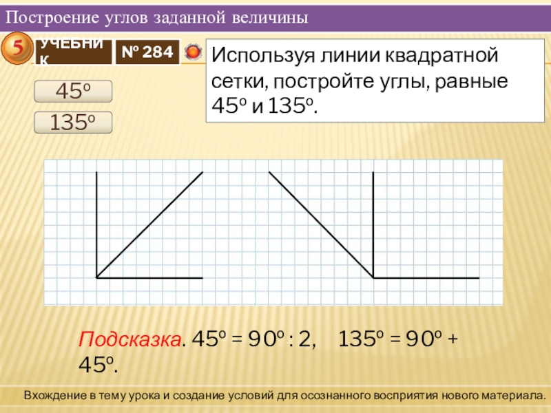 Подсказка. 45о = 90о : 2, 135о = 90о + 45о.