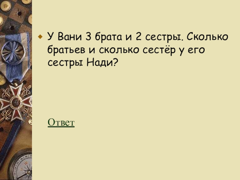 У Вани 3 брата и 2 сестры. Сколько братьев и сколько