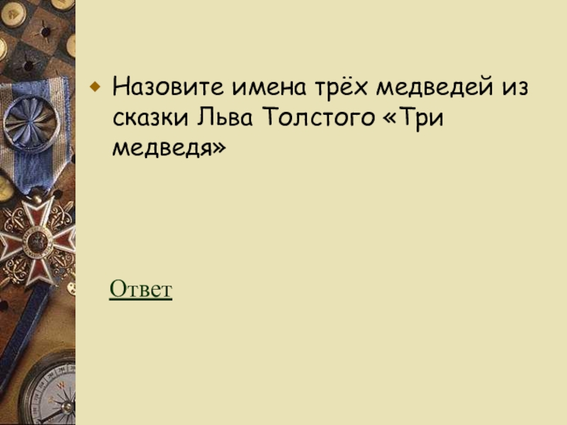 Назовите имена трёх медведей из сказки Льва Толстого «Три медведя»