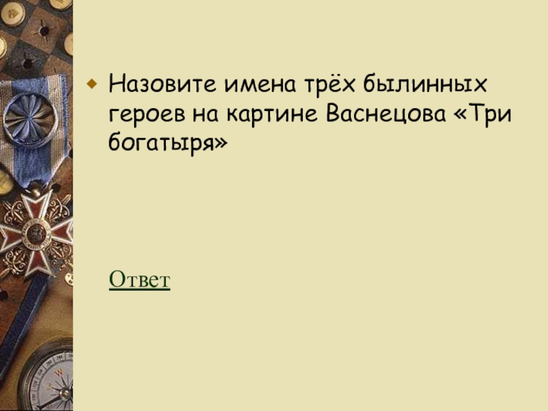 Назовите имена трёх былинных героев на картине Васнецова «Три богатыря»