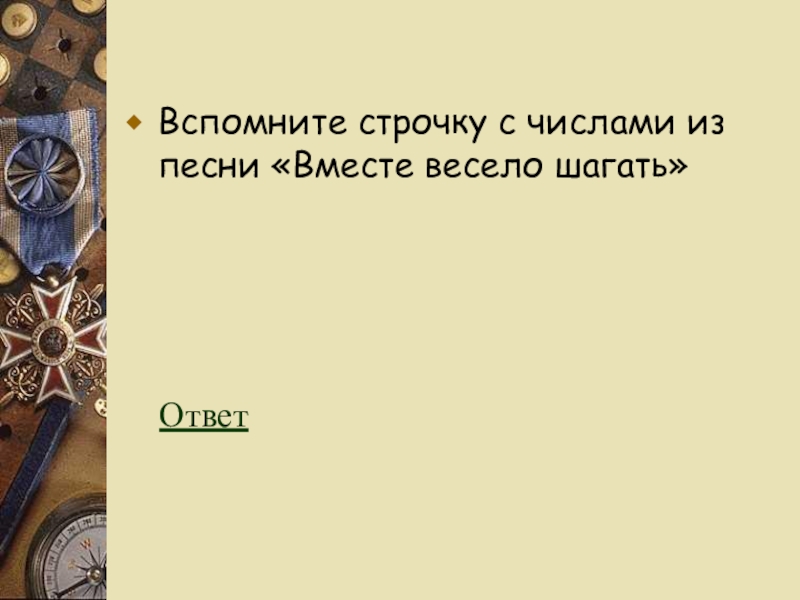 Вспомните строчку с числами из песни «Вместе весело шагать»