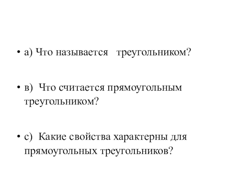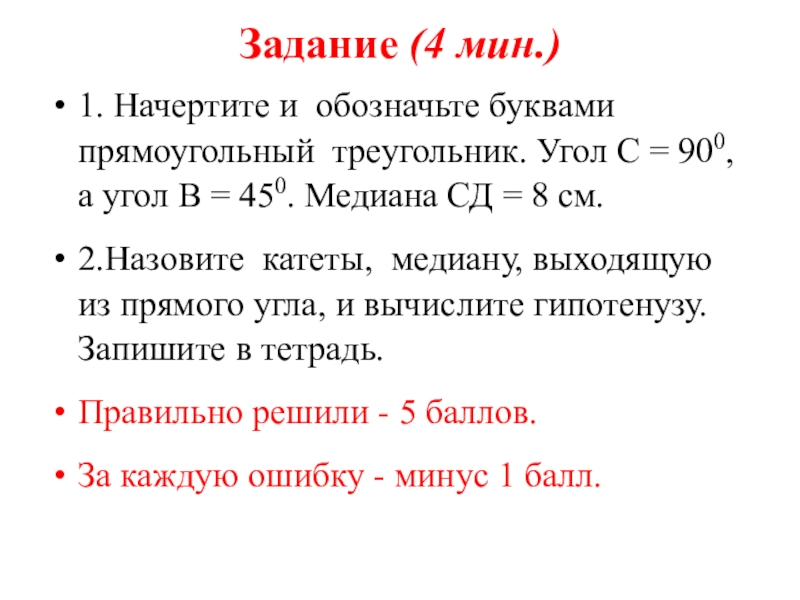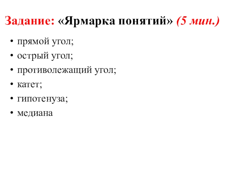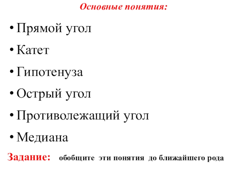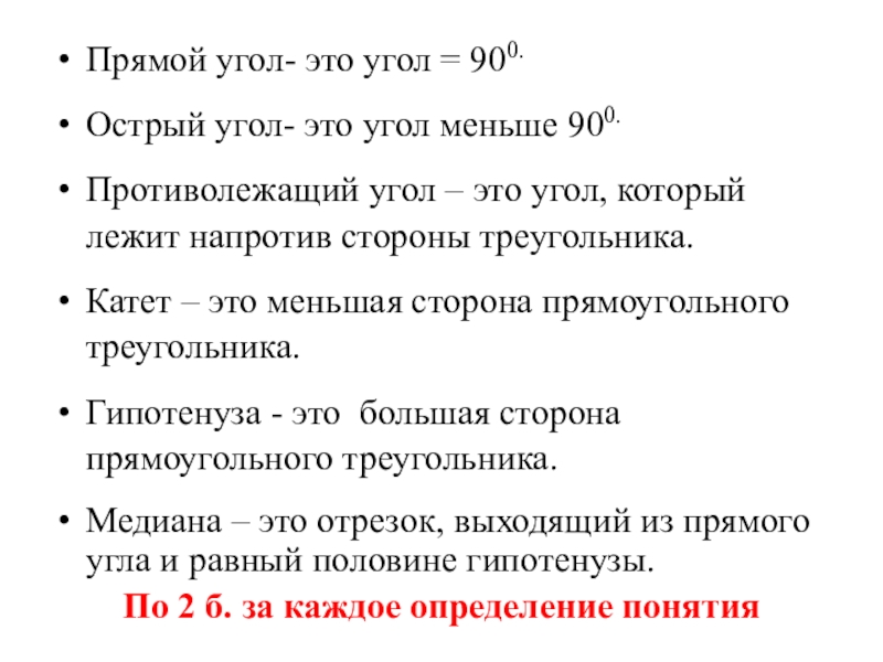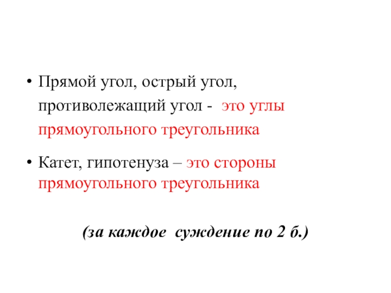 5) прямой угол образуют катеты;
