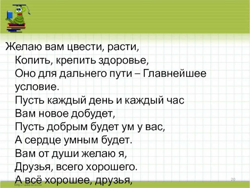 Это сайт презентаций, где можно хранить и обмениваться своими презентациями, докладами, проектами, шаблонами в формате PowerPoint с другими пользователями. Мы помогаем школьникам, студентам, учителям, преподавателям хранить и обмениваться учебными материалами.