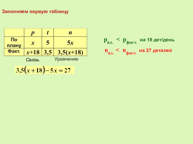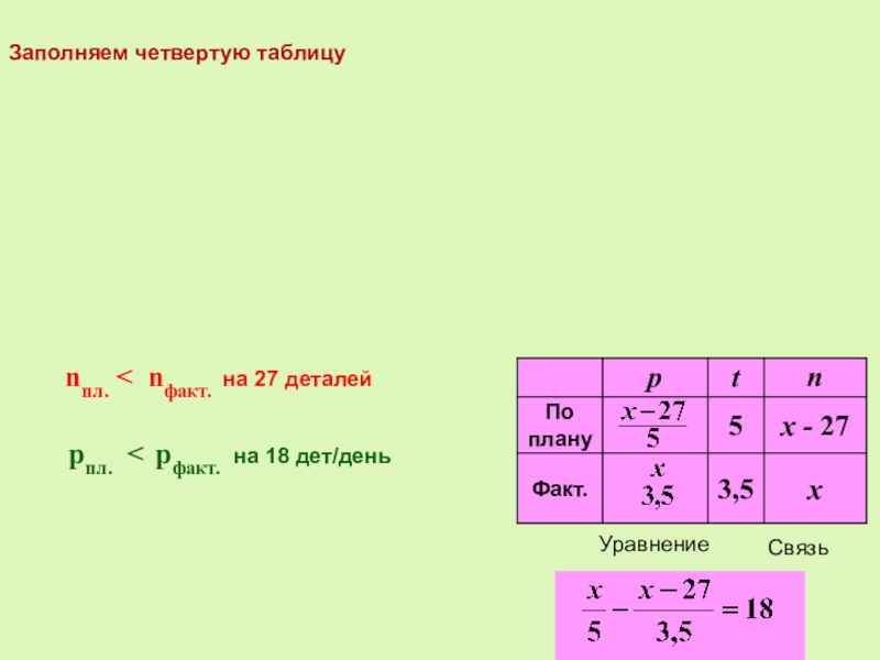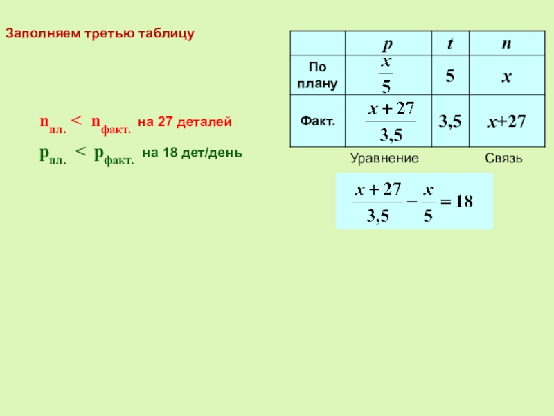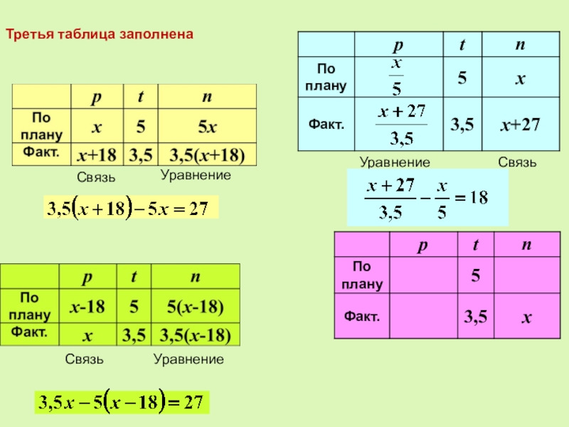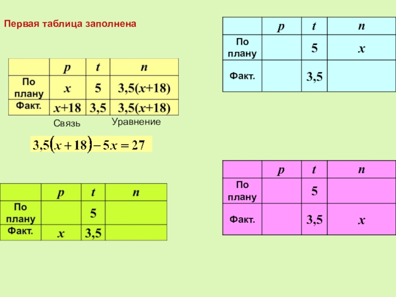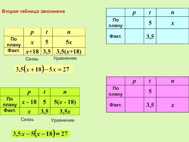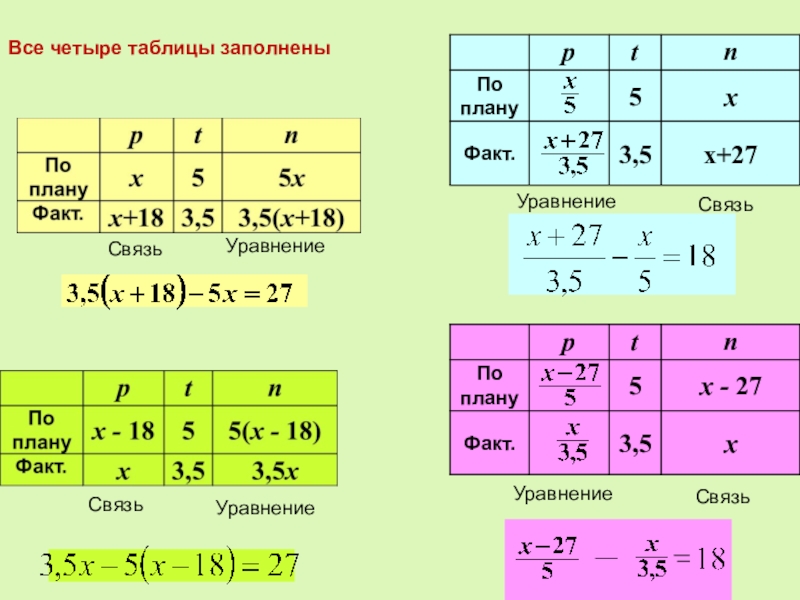 Сложность уравнений, получаемых от обозначения буквой x одноименных неизвестных величин одинакова. Поэтому в дальнейшем заполняем только две таблицы и начинаем с таблицы, где буква x обозначает величину, которую нужно найти по условию задачи.