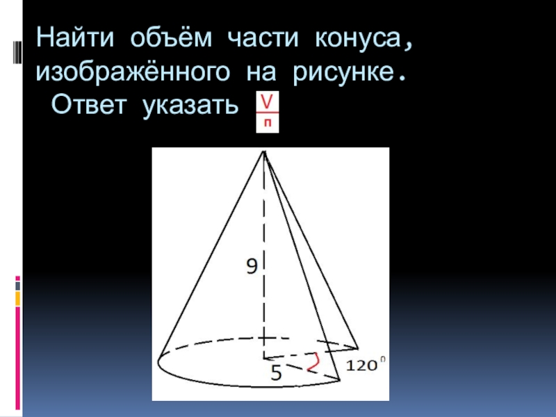 Слайд 11Найти объём части конуса, изображённого на рисунке.