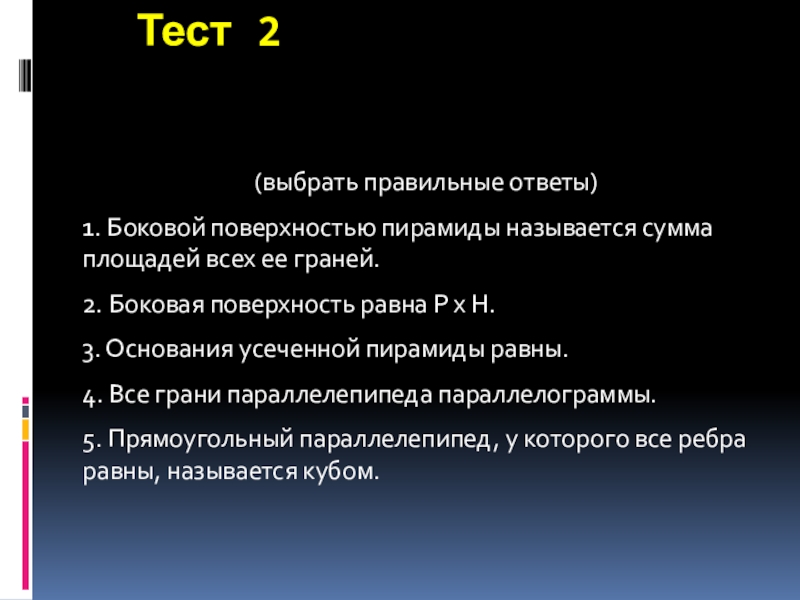 5. Прямоугольный параллелепипед, у которого все ребра равны, называется кубом.