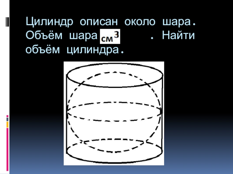 Слайд 12Цилиндр описан около шара. Объём шара 8 . Найти