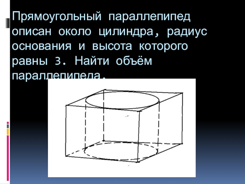 Слайд 10Прямоугольный параллепипед описан около цилиндра, радиус основания и высота которого равны
