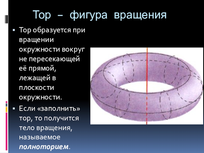 Если «заполнить» тор, то получится тело вращения, называемое полноторием.