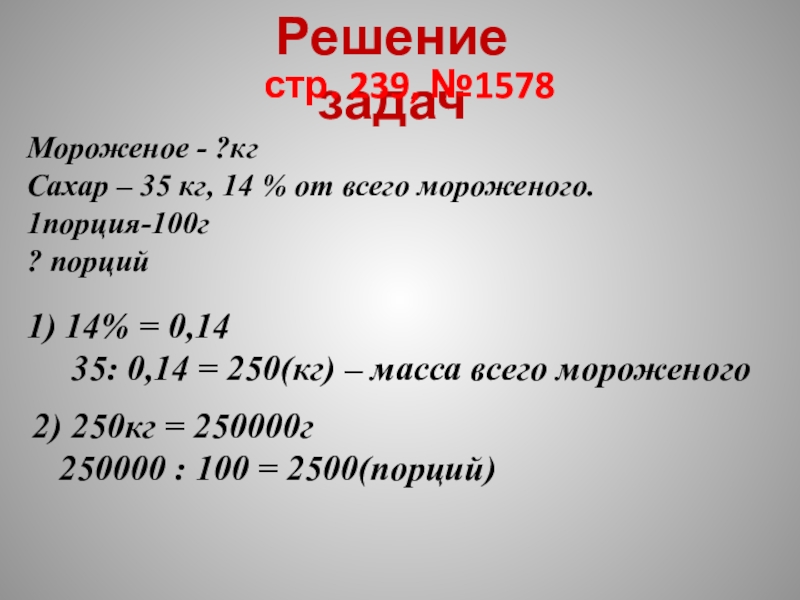 35: 0,14 = 250(кг) – масса всего мороженого
