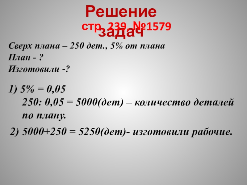 250: 0,05 = 5000(дет) – количество деталей по плану.