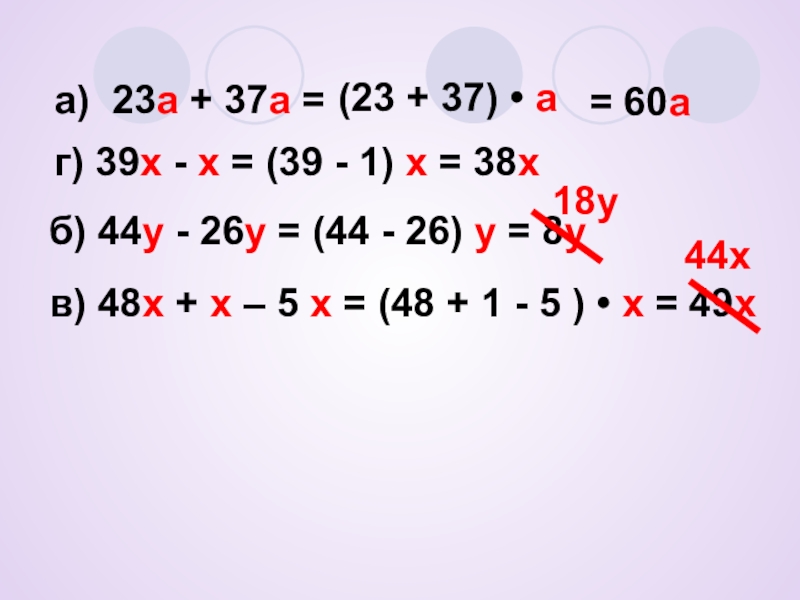 в) 48х + х – 5 х = (48 + 1 - 5 ) • х = 49х