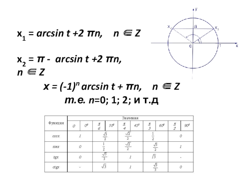 x2 = π - arcsin t +2 πn, n ∈ Z