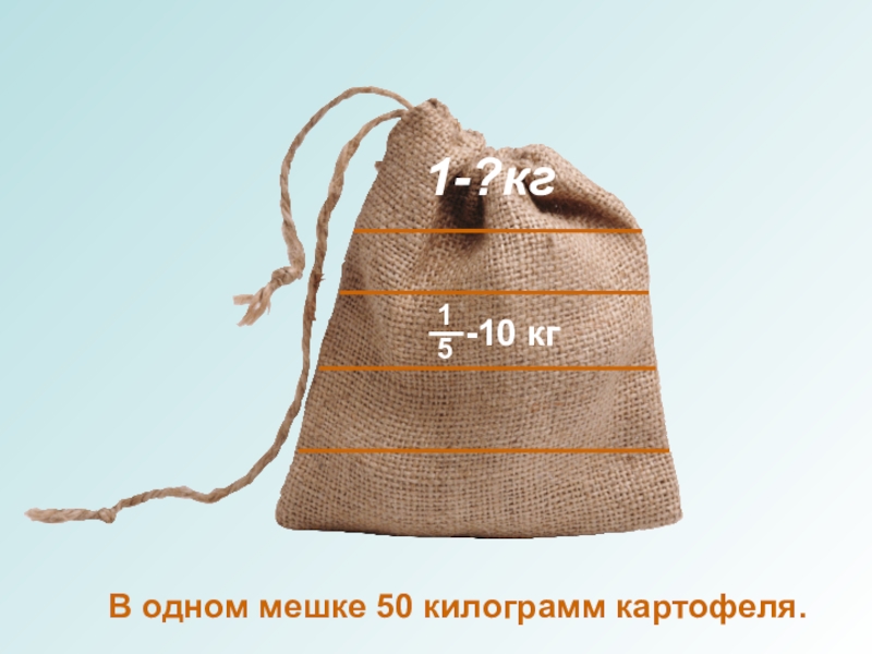 -10 кг151-?кгВ одном мешке 50 килограмм картофеля.