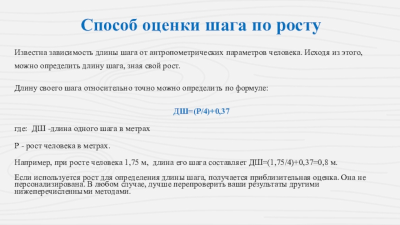 человека. Исходя из этого, можно определить длину шага, зная свой рост.