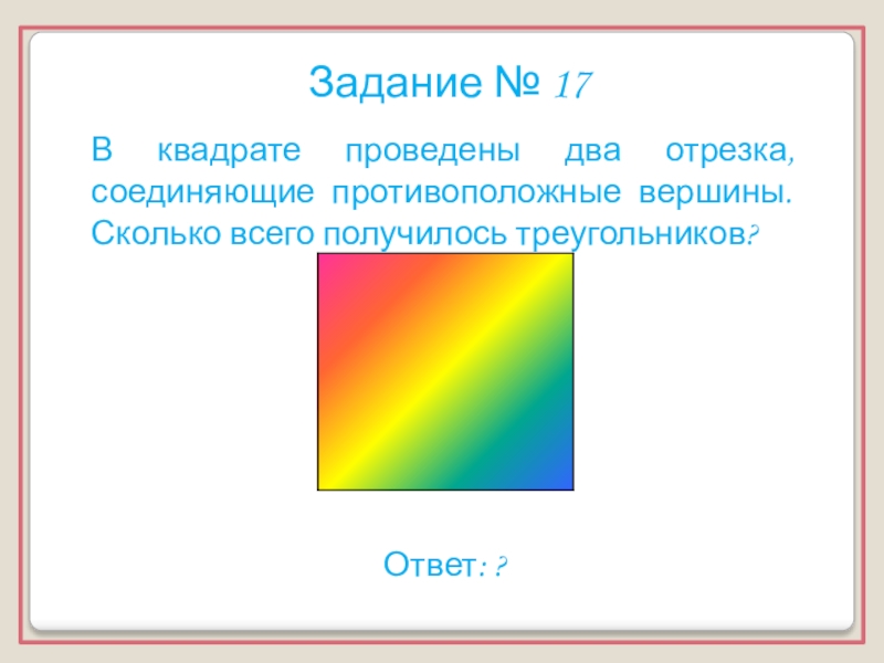 В квадрате проведены два отрезка, соединяющие противоположные вершины. Сколько