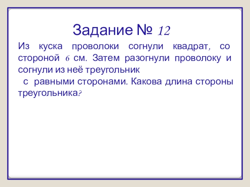 Слайд 32Из куска проволоки согнули квадрат, со стороной 6 см. Затем разогнули