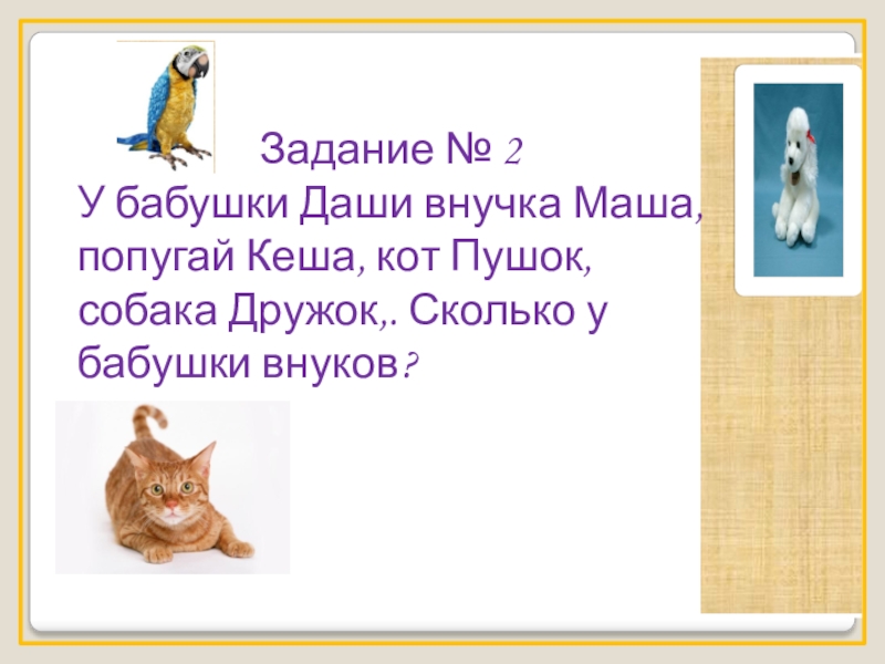 У бабушки Даши внучка Маша, попугай Кеша, кот Пушок,