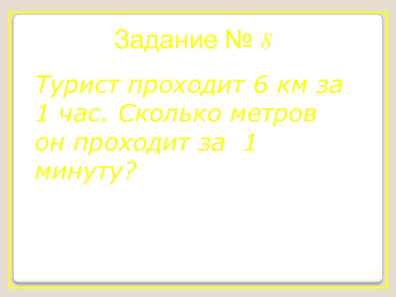 Слайд 24Турист проходит 6 км за 1 час. Сколько метров он проходит