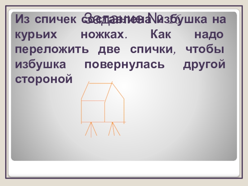 Слайд 37Из спичек составлена избушка на курьих ножках. Как надо переложить две