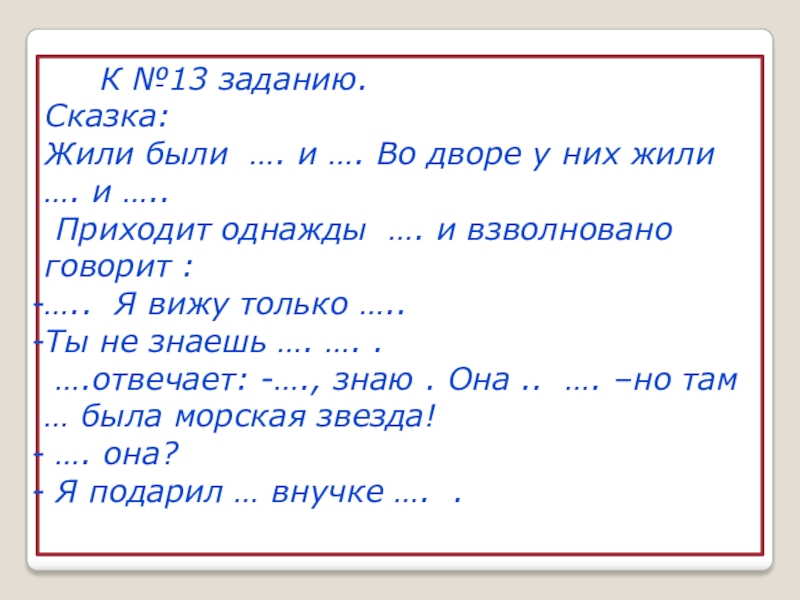 ….отвечает: -…., знаю . Она .. …. –но там … была морская звезда!